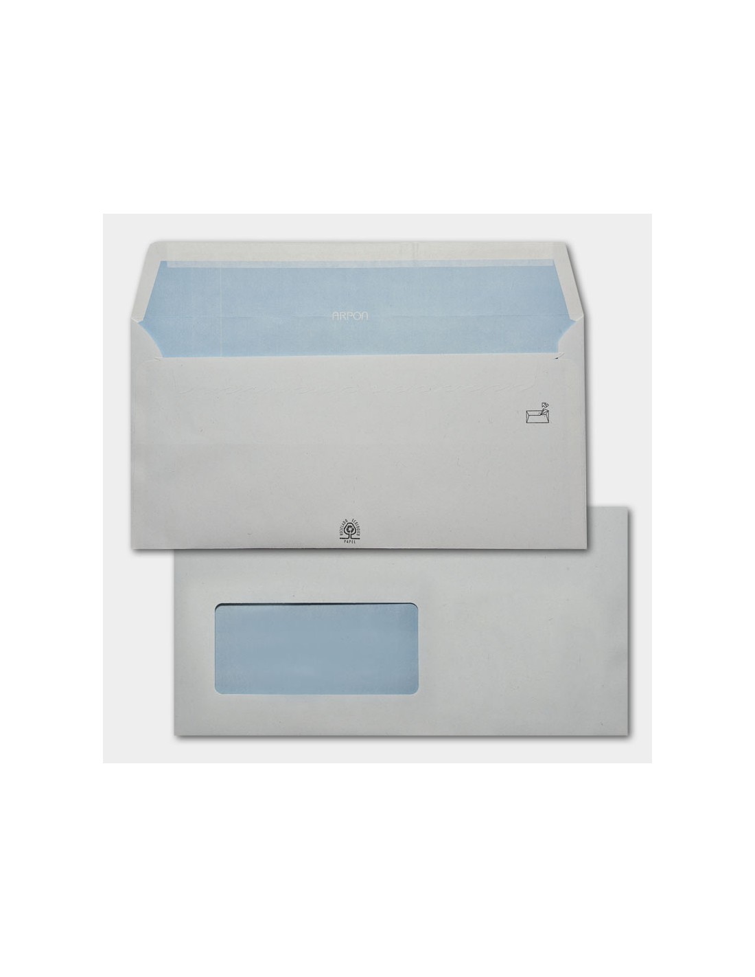 Sobre 115x225 ECO tira silicona blanco 105 gms FSC 70% fondo interior masa caja 500 uds. embalaje 3000 uds.